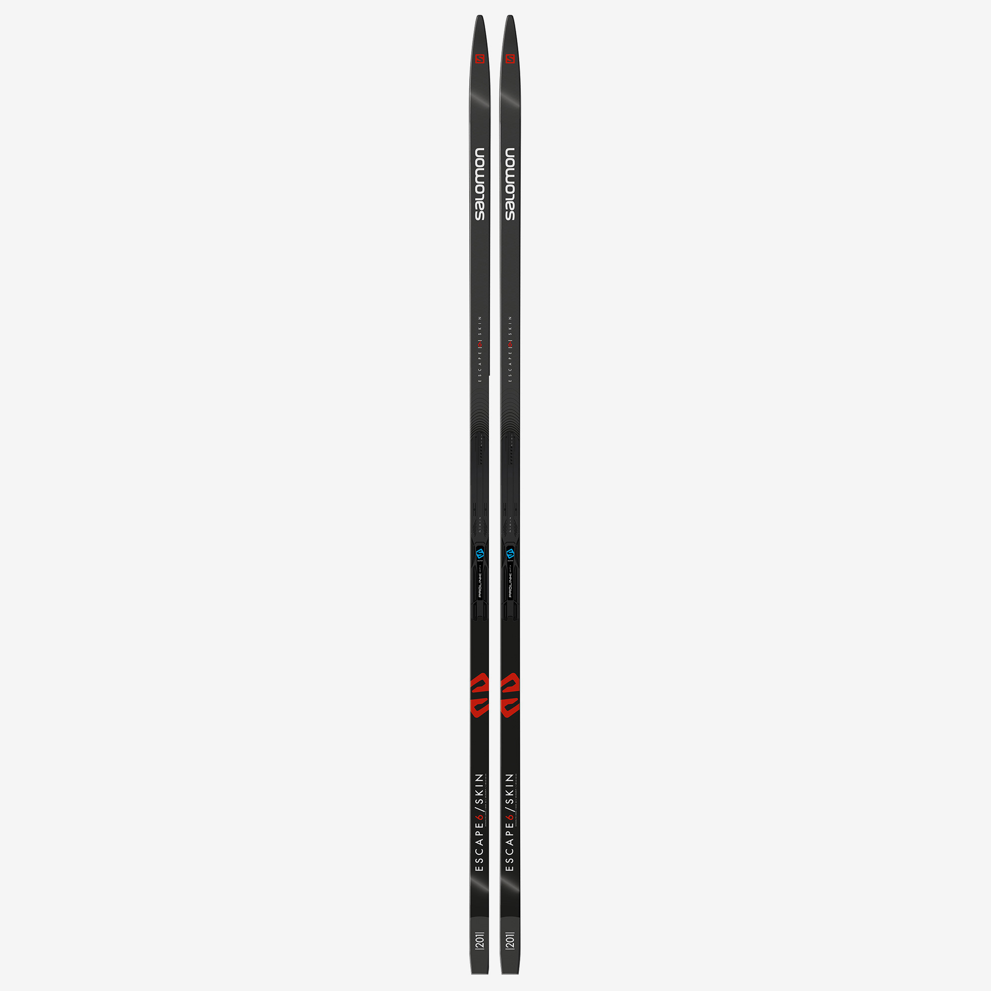 Kvalitní sporotvní běžky na klasiku Salomon Escape 6 Skin PSP, které díky SkinGrip+ pásku v odrazové části zajišťují dokonalý odraz za všech podmínek. Jádro Densolite 2000 činí lyže velmi pevné a snadno ovladatelné.