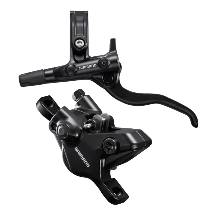 Brzda na horské nebo trekingové kolo Shimano Deore BR-MT410, která díky dvoupístkovému provedení poskytuje spolehlivý brzdný účinek. Dvouprstá brzdová páčka umožňuje nastavení vzdálenosti od řídítek.
