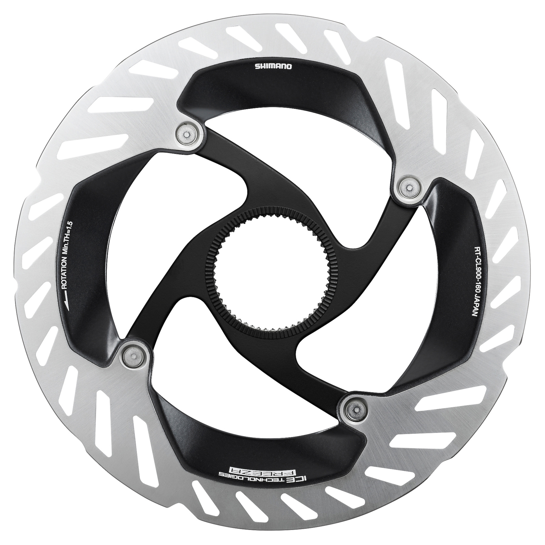 Špičkový brzdový kotouč na silniční kolo Shimano Dura-Ace RT-CL900, který díky sendvičové konstrukci poskytuje výrazně lepší brzdný účinek a odvod tepla. Zesílená ramena kotouče zabraňují deformaci kotouče při brždění. Kotouč je určený pouze pro systém montáže Center Lock.