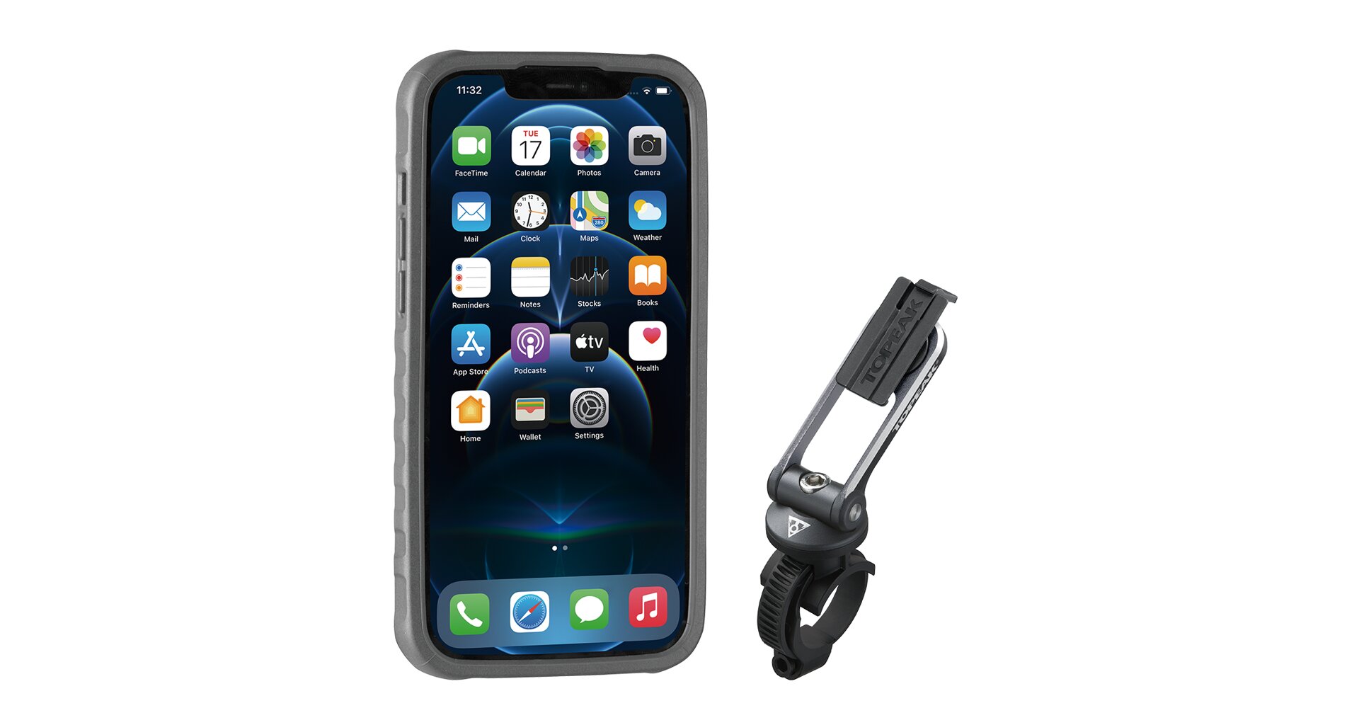 Kvalitní držák s pouzdrem na telefon na kolo Topeak Ridecase, který je určený pouze pro zařízení iPhone 12 Pro Max. Držák umožňuje širokou škálu nastavení. Samotné pouzdro na telefon je velmi odolné a poskytuje bezpečné držení telefonu.