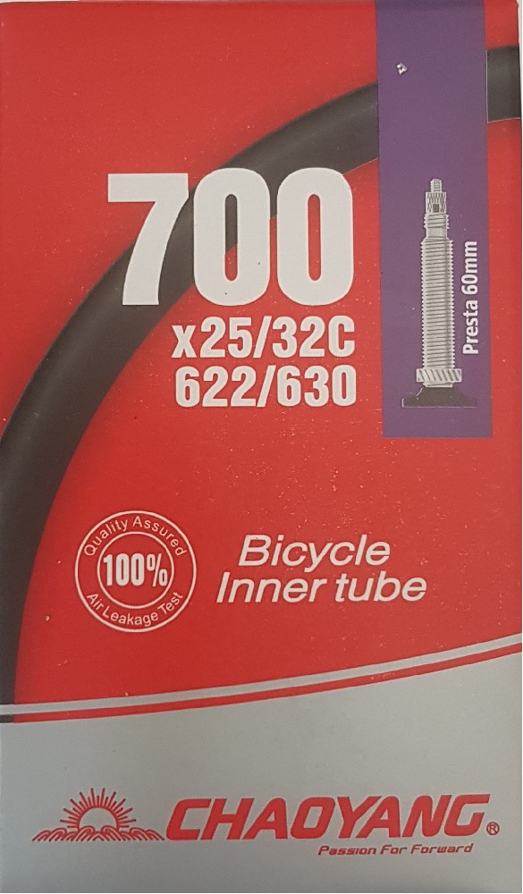 Kvalitní duše na silniční kolo Chaoyang s 60 mm galuskovým ventilkem, která umožňuje použití plášťů o šíři 25-32 mm.