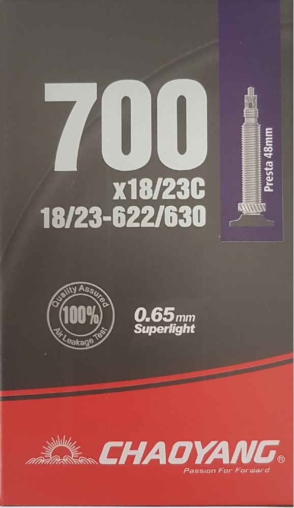Vysoce kvalitní duše na silniční kolo Chaoyang Superlight 18/23-622 FV48 700x18/23C s galuskovým ventilkem.