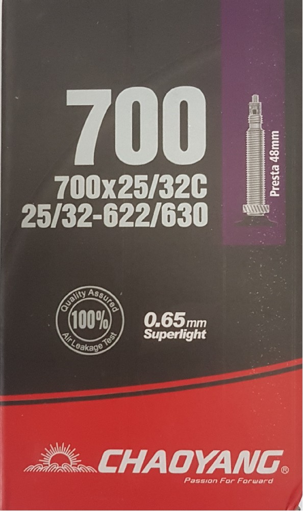 Vysoce kvalitní duše na silniční kolo Chaoyang Superlight 25/32-622 FV48 700x25/32 s galuskovým ventilkem.
