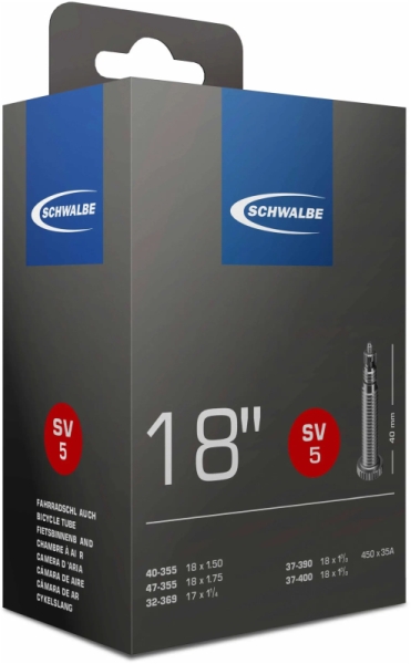 Kvalitní duše na 18" kolo Schwalbe 18" SV5 s galuskovým ventilkem, kterou je možné použít pro pláště o rozměrech