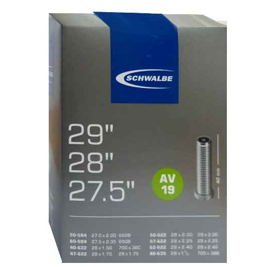 Duše na kolo Schwalbe AV19 40/62- 584/622 s autoventilem, kterou je možné používat jak na 27,5, tak na 29" kole. Duše je určená pro následující rozměry kol: