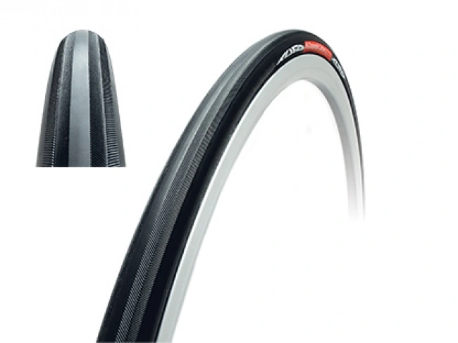 Sportovní galuska Tufo Hi-Composite Carbon 23-622. Aplikace kompozitního nárazníku spolu s vysoce ztužujícími sazemi v matrici umožnila snžit tloušťku běhounu a zachovat vysoký kilometrový výkon. Menší tloušťka běhounu minimalizuje valivý odpor při zachování ideálního tlumení a vysoká odolnosti proti defektu.