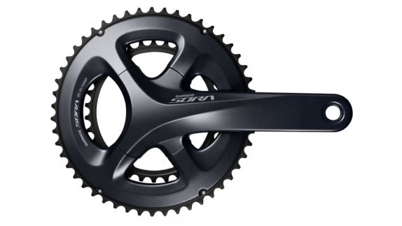 Kliky na silniční kolo Shimano Sora FC-R3000 s převodníky 50-34, které jsou určené pro systémy 2x9. Konstrukčně vychází kliky z vyšších sad Tiagra a 105, liší se však hmotností a zpracováním převodníků.