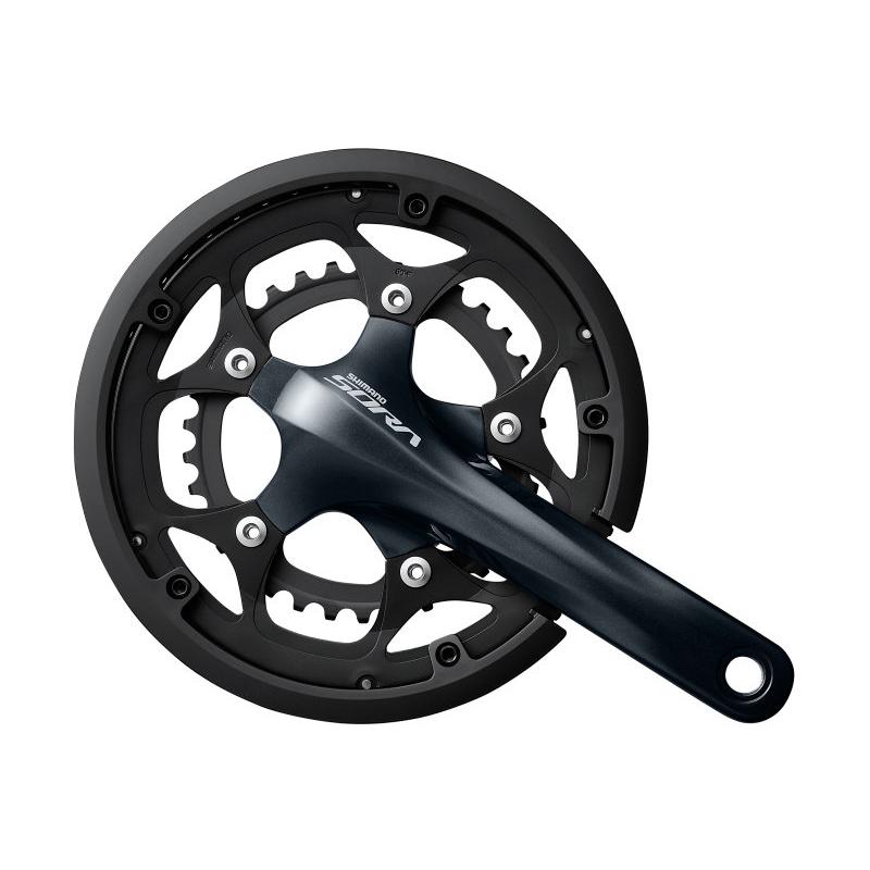 Kvalitní kliky na silniční kolo Shimano Sora FC-R3000 s převodníky 50-34. Kliky mají integrovaný kryt převodníků.