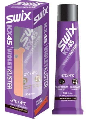 Klistr na běžky Swix KX45 fialový o hmotnosti 55g, který je určený pro teploty -2/-4°C.