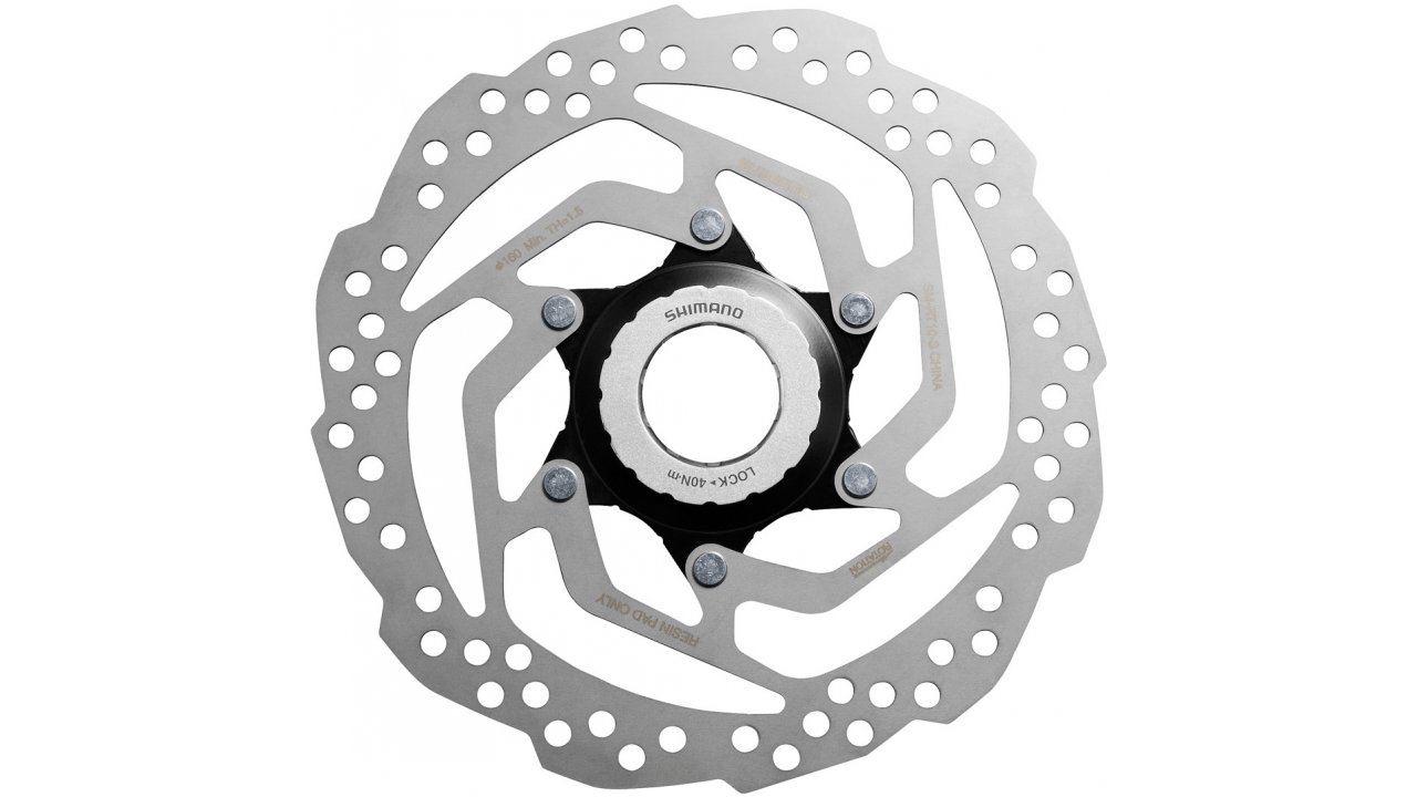 Základní kotouč na kolo Shimano SM-RT10, který poskytuje dobrý brzdný účinek. Kotouč je navržen pro polymerové destičky a je určený pro montáž systémem Center Lock.