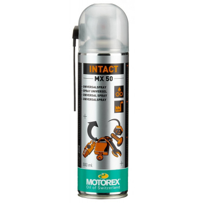 Mazivo ve spreji Motorex Intact MX 50, které představuje perfektní ochranu proti korozi. Zanechává za sebou vysoce účinný ochranný film, který odpuzuje vodu a chrání před korozí.