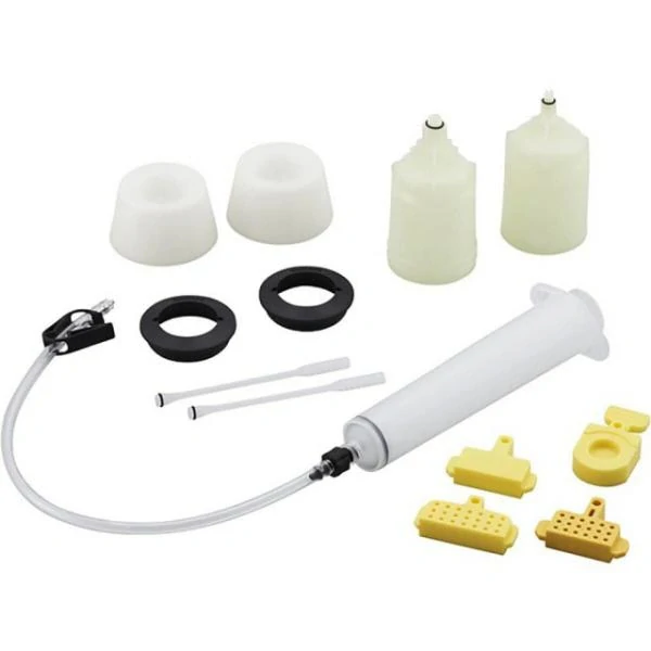 Balení obsahuje: 2ks nálevku pro ST/BL, stříkačku a 4ks distančních vložek pro různé druhy brzdových třmenů.