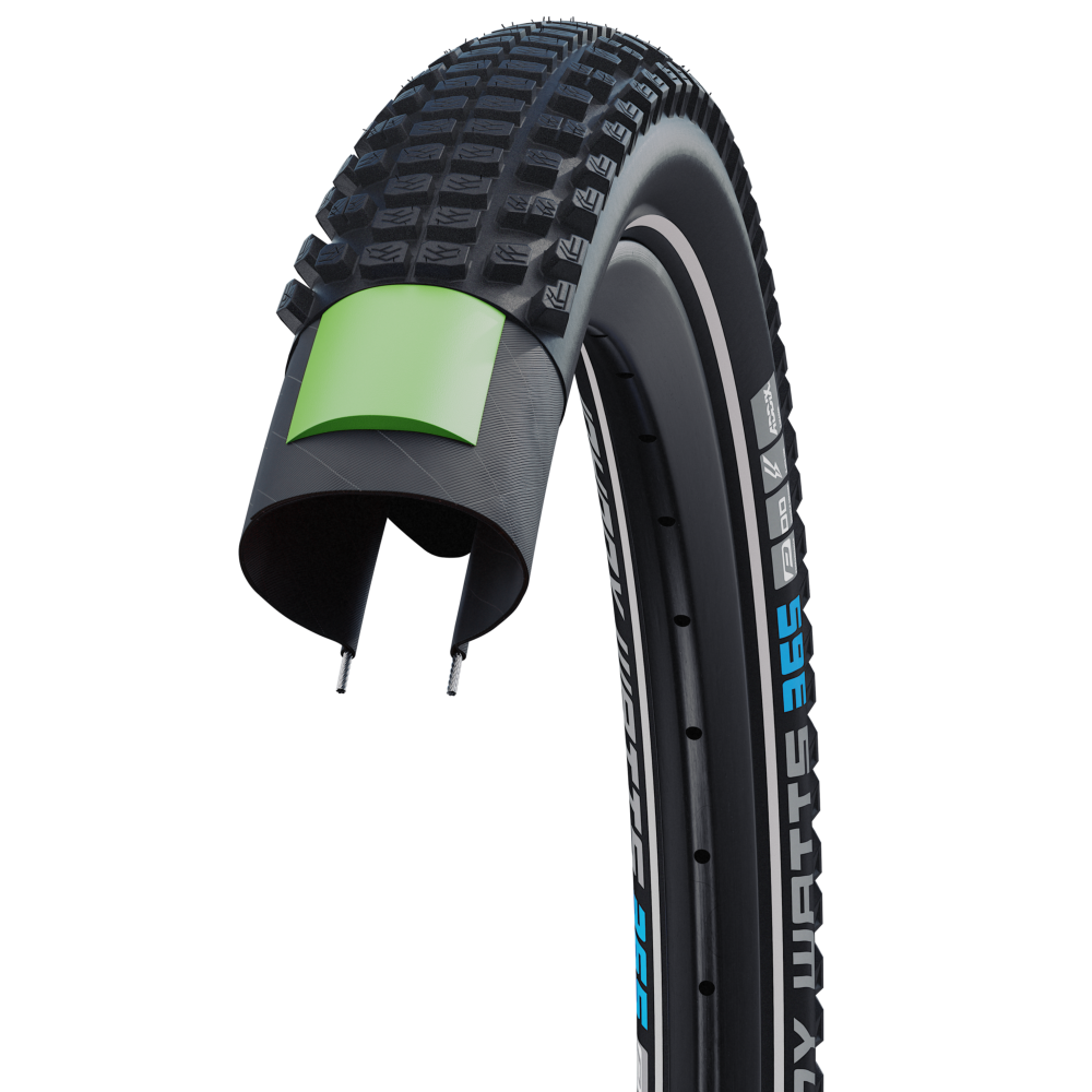 Vysoce kvalitní plášť Schwalbe Johnny Watts 365 29x2.35, 60-622 Performance DoubleDefense Addix 4 season, který je určený především na elektrokola. Směs Addix 4 season zajišťuje vynikající přilnavost na mokru a také dlouhou životnost. Ochrana DoubleDefense Green Guard perfektně chrání proti defektu.