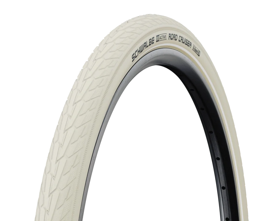Schwalbe Road Cruiser v rozměru 26 x 1.75" (47-559) je drátový plášť z Active Line, který dodá městskému, retro nebo cestovnímu kolu osobitý styl. Tato varianta v atraktivní krémové barvě bočnice s reflexním pruhem je ideální pro jezdce, kteří chtějí kombinovat bezpečný a plynulý provoz s výrazným designovým prvkem.