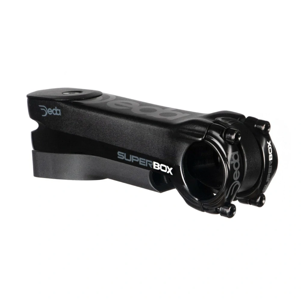 Hliníkový představec na silniční kolo nebo gravel Deda Superbox, který je určený pro vnitřní vedení kabeláže. Patentovaný systém poskytuje dvě možná montážní řešení pro integraci, kompletní vnitřní vedení kabelů (DCR) nebo semi integrované s krytem (S-DCR). Distanční vložky a kryt jsou dělené a umožňují tak přidávání či odebírání bez nutnosti rozpojování kabelů.
