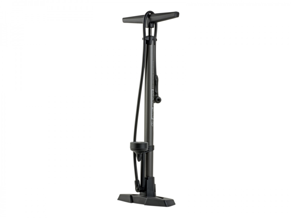 Nožní hustilka AUTHOR AirTurbo Eco s ocelovým válcem umístěným na velmi stabilní kompozitní základně s extra velkými opěrkami pro nohy. Velký, snadno čitelný manometr umožňuje přesné měření tlaku, ať už doma, v dílně nebo na trailech.