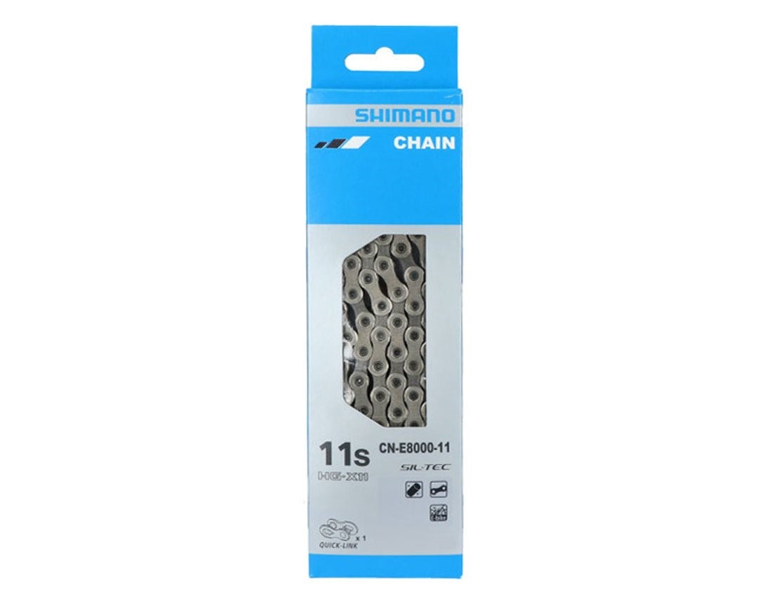 Vysoce kvalitní řetěz na elektrokolo Shimano CN-E8000, který je určený pro 11 rychlostí. Řetěz má speciání povrchovou úpravu SIL-TEC, která zajišťuje hladký chod a dlouhou životnost.