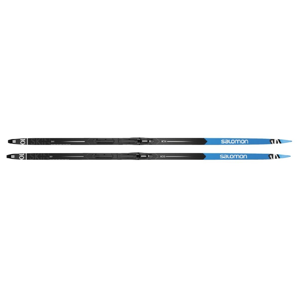 Set běžek na klasiku Salomon RC10 eSkin hard a vázání Salomon Prolink Shift In, které mají na skluznici nažehlený eSkinGrip+ pásek, který poskytuje dokonalý odraz a perfektní skluz. Skin Grip běžky jsou velmi oblíbené běžky, jelikož nemusíte mít starosti s voskováním lyží. Velice pevné jádro D-Carbon dodává lyžím velice nízkou hmotnost a vysokou tuhost. G5 universal skluznice spolu s World Cup broušením dodávají lyžím vysokou rychlost.