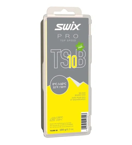 Vysoce kvalitní skluzný vosk Swix TS10B-18 Top speed s černým aditivem, které přispívá k vyšší tvrdosti vosku a tím i nižšímu otěru. Dále aditivum působí jako lubrikant a vosk je tak rychlejší na špinavém sněhu. Vosk je ideální na umělý sníh nebo na vysoce znečištěný přírodní sníh. Nahrazuje HF10WBX.