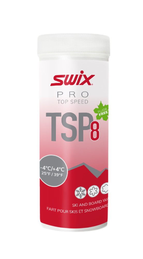 Závodní, práškový, skluzný vosk Swix TSP08-4 Top speed, který je určený pro teploty -4/+4°C. Vosk je možné používat buď samotný nebo jako podklad pod finální vrstvu.