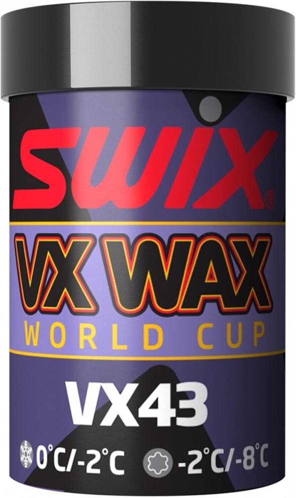 Vysoce kvalitní stoupací lyžařský vosk Swix VX43 s fluorem, který je ideální do vlhkých podmínek.