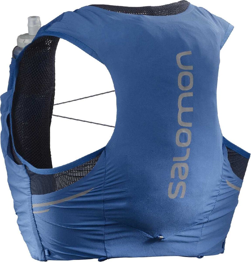 Špičkový běžecký batoh Salomon Sense Pro 5 set blue ebony, který je konstruován tak, aby perfektně přilehl k tělu. Díky technologii Sensifit je batoh je nošení batohu velmi komfortní a nijak nebrání pohybu. Součástí batohu jsou 2 měkké láhve o objemu 500ml. Batoh disponuje třemi kapsami, 2 přední menší kapsy jsou ideální na energetické tyčinky a zadní spolehlivě pojme větrovku pro náhlé změny počasí.