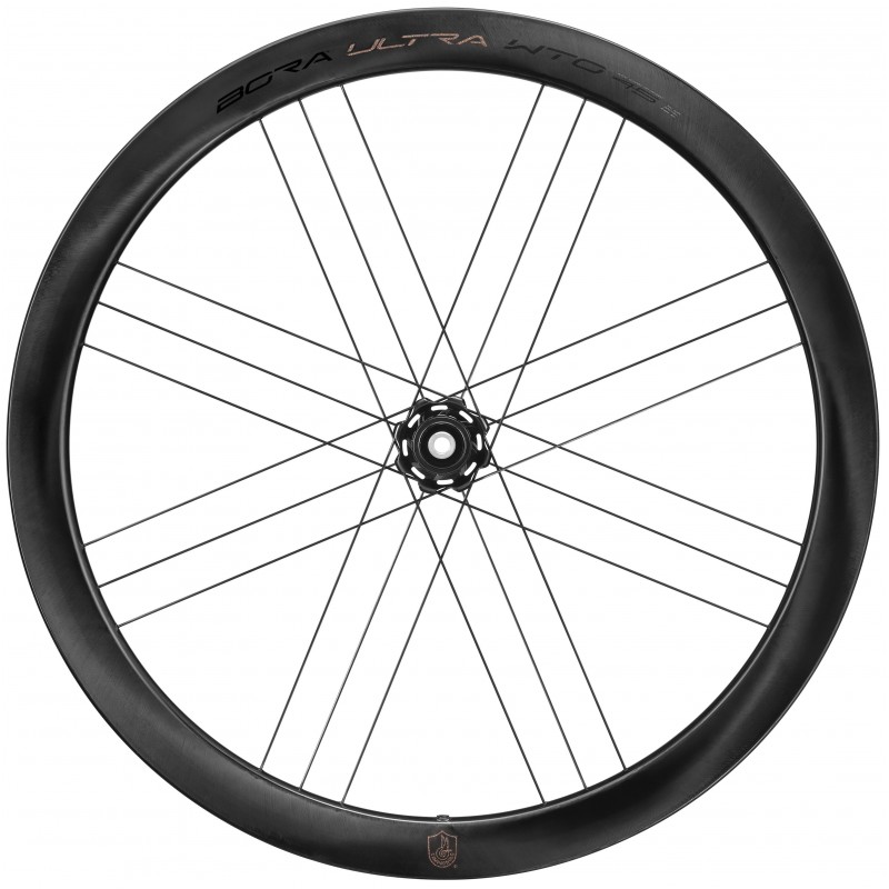 BORA ULTRA WTO 33/45/60 2WF DB novinka 2022 – šperk mezi silničními zapletenými koly pro kotoučové brzdy se skvělými aerodynamickými vlastnostmi (pojmenování kol WTO je akronym slov WIND TUNEL OPTIMIZED, který vypovídá o prostředí, ve kterém inženýři firmy Campagnolo tato kola vyvíjeli). Další akronym 2WF (2 WAY FIT) poukazuje na to, že kola lze použít jak se standardními, tak i bezdušovými plášti a to bez jakékoliv další úpravy. Kola jsou osazena legendárními keramickými ložisky CULT, který mají výjimečně nízký valivý odpor. Přední kolo je napleteno na karbonovém náboji, zadní, z důvody dosažení potřebné pevnosti, na náboji duralovém.
